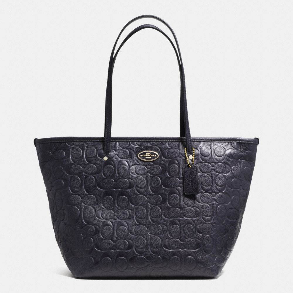 COACH F34712 - SIGNATURE EMBOSSED PEBBLE LEATHER STREET ZIP TOTE - LIGHT-GOLD/MIDNIGHT - HANDBAGS