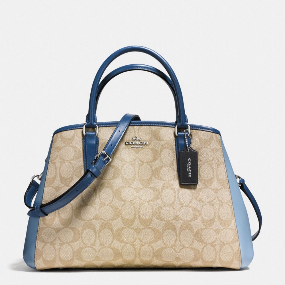 1. COACH f57492 - SMALL MARGOT CARRYALL IN COLORBLOCK SIGNATURE - SILVER/KHAKI/BLUE MULTI
