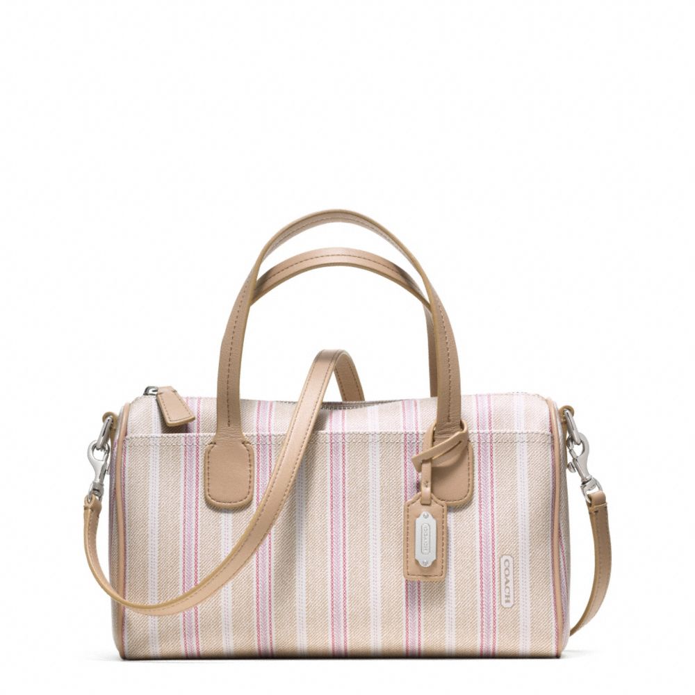 COACH F49254 - WEEKEND TICKING STRIPE MINI SATCHEL - SILVER/KHAKI PINK (click the link before for more detail)