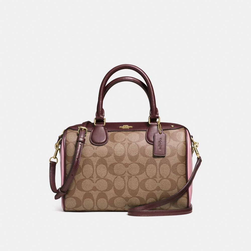 1. COACH f57495 - MINI BENNETT SATCHEL IN COLORBLOCK SIGNATURE - IMITATION GOLD/KHAKI OXBLOOD MULTI