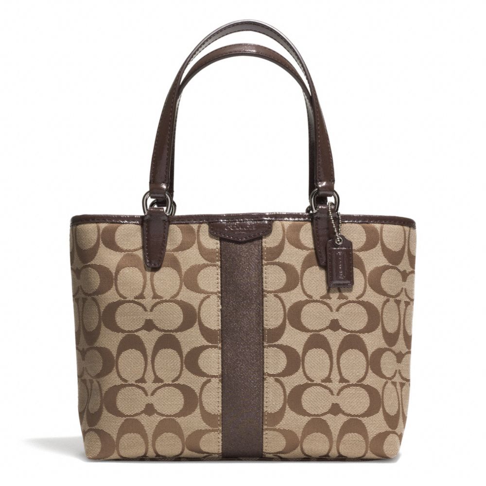 COACH F51156 - SIGNATURE STRIPE TOP HANDLE TOTE - SILVER/KHAKI/MAHOGANY - HANDBAGS