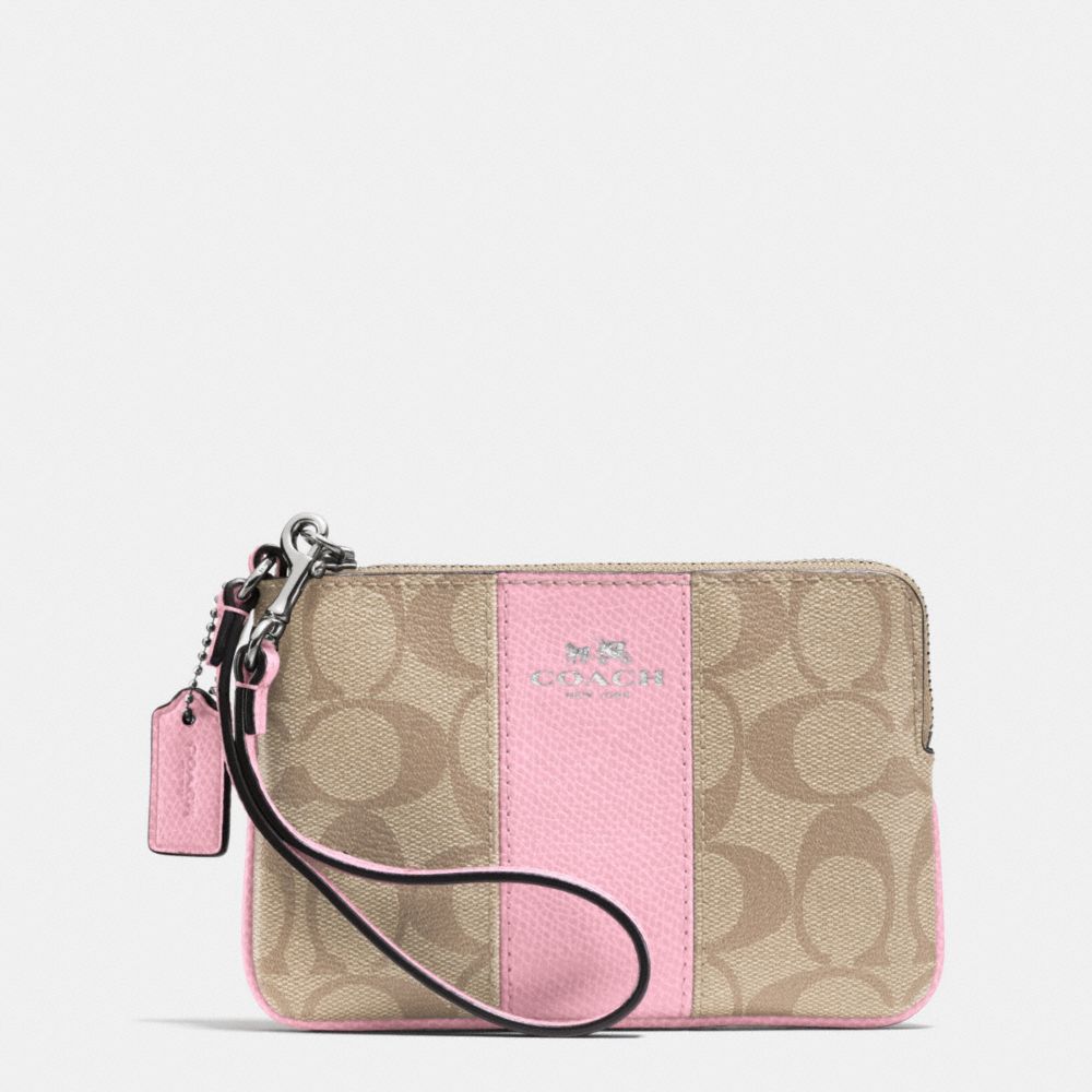 1. COACH f64233 - CORNER ZIP WRISTLET IN SIGNATURE COATED CANVAS WITH LEATHER - SILVER/LIGHT KHAKI/PETAL