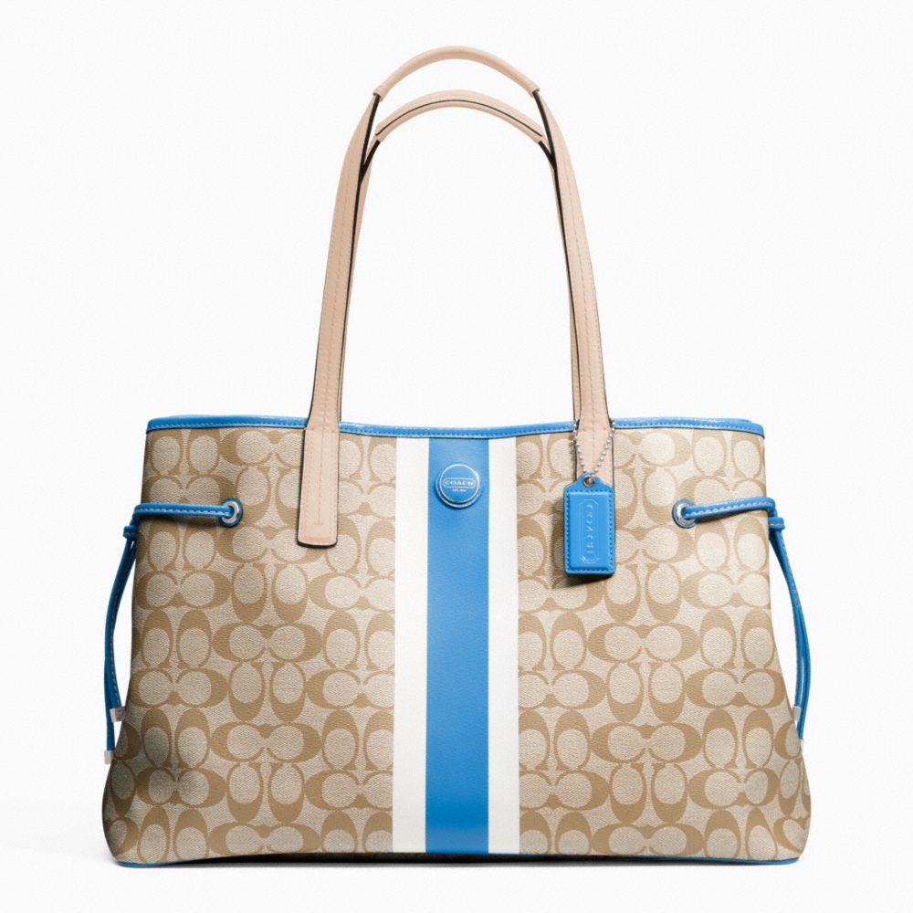 COACH F23049 - SIGNATURE STRIPE PVC LARGE CARRYALL - SILVER/LT KHAKI/BRIGHT SKY (click the link before for more detail)