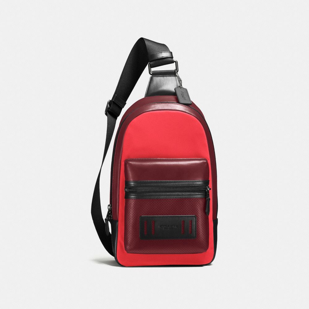 1. COACH f56877 - TERRAIN PACK IN PERFORATED MIXED MATERIALS - BRICK RED/BRIGHT RED