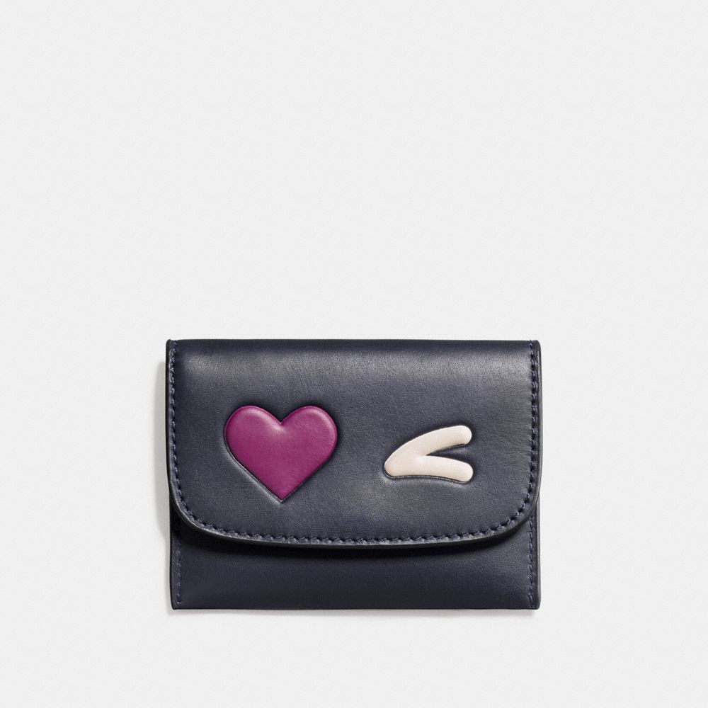 1. COACH f11720 - HEART CARD POUCH IN GLOVETANNED LEATHER - SILVER/MIDNIGHT MULTI