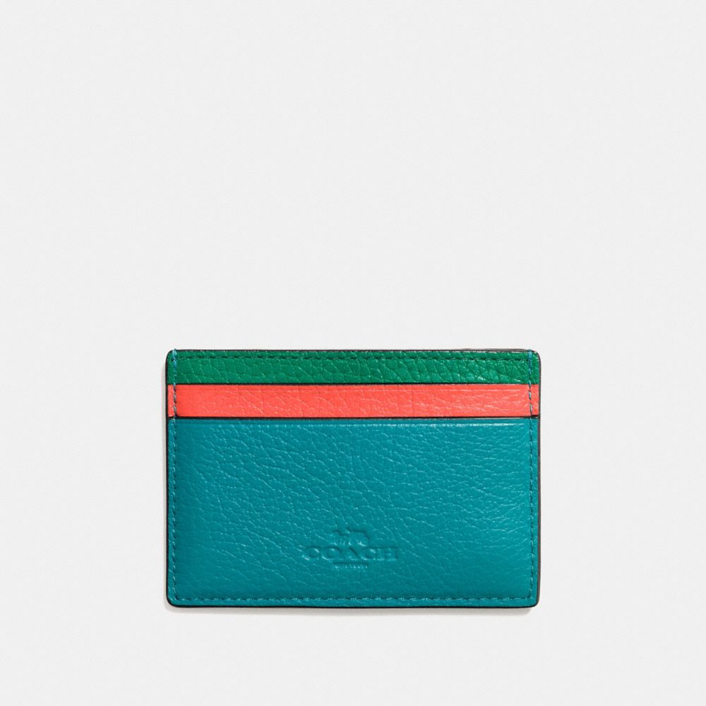 60. COACH f86927 - FLAT CARD CASE IN COLORBLOCK CROSSGRAIN LEATHER - SILVER/MIDNIGHT