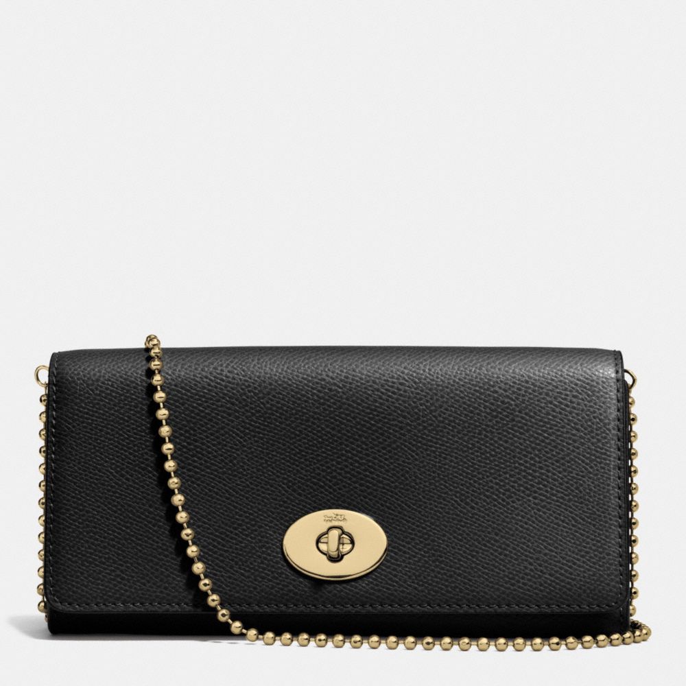COACH F53124 - SLIM CHAIN ENVELOPE IN CROSSGRAIN LEATHER - LIGHT GOLD/BLACK (click the link before for more detail)