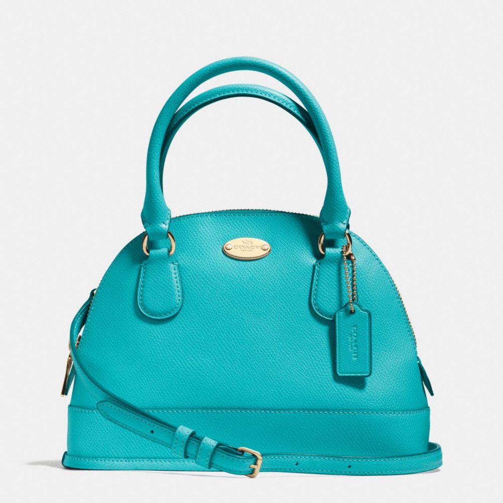 COACH F34090 - MINI CORA DOMED SATCHEL IN CROSSGRAIN LEATHER - LIGHT GOLD/CADET BLUE (click the link before for more detail)
