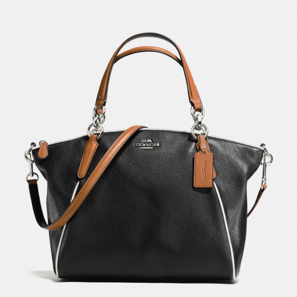 COACH F57486 - SMALL KELSEY SATCHEL WITH CONTRAST TRIM IN PEBBLE LEATHER - SILVER/BLACK-MULTI - HANDBAGS