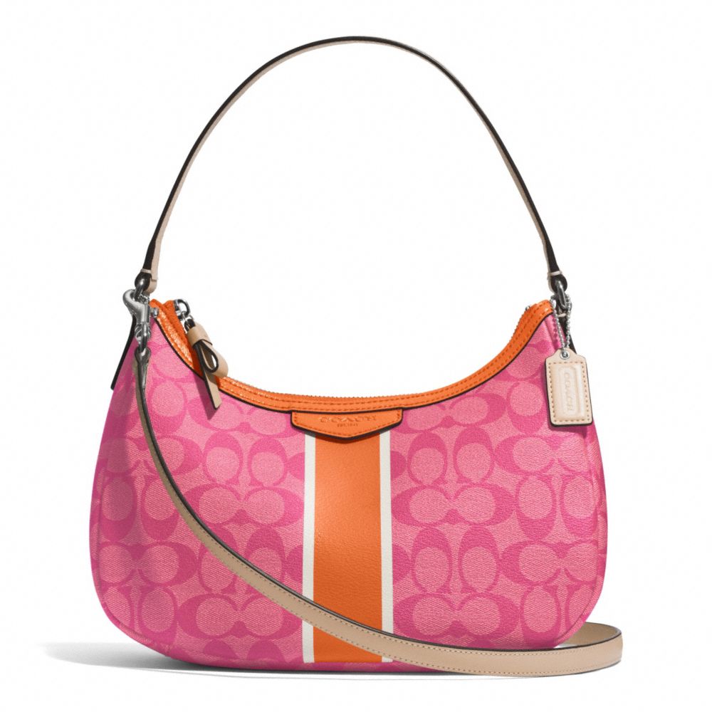 COACH F29942 - SIGNATURE STRIPE DEMI CROSSBODY - SILVER/PINK/ORANGE (click the link before for more detail)