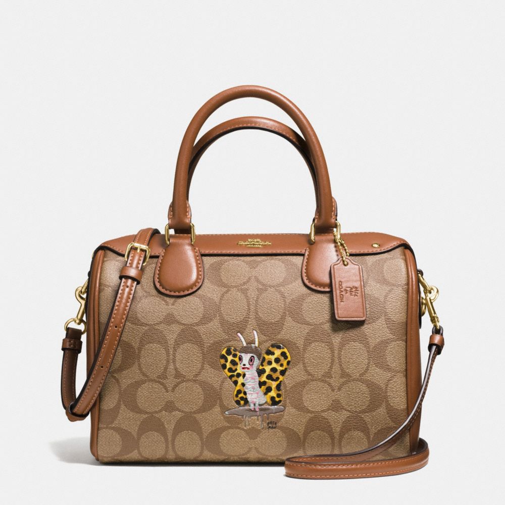 1. COACH f57909 - BASEMAN X COACH BUTCH MINI BENNETT SATCHEL IN SIGNATURE COATED CANVAS - IMITATION GOLD/KHAKI/SADDLE