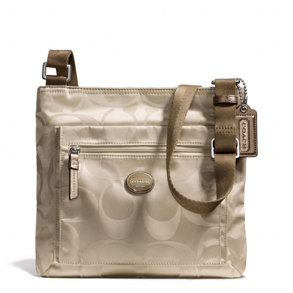 COACH F77408 - GETAWAY SIGNATURE NYLON FILE BAG - SILVER/LIGHT KHAKI (click the link before for more detail)