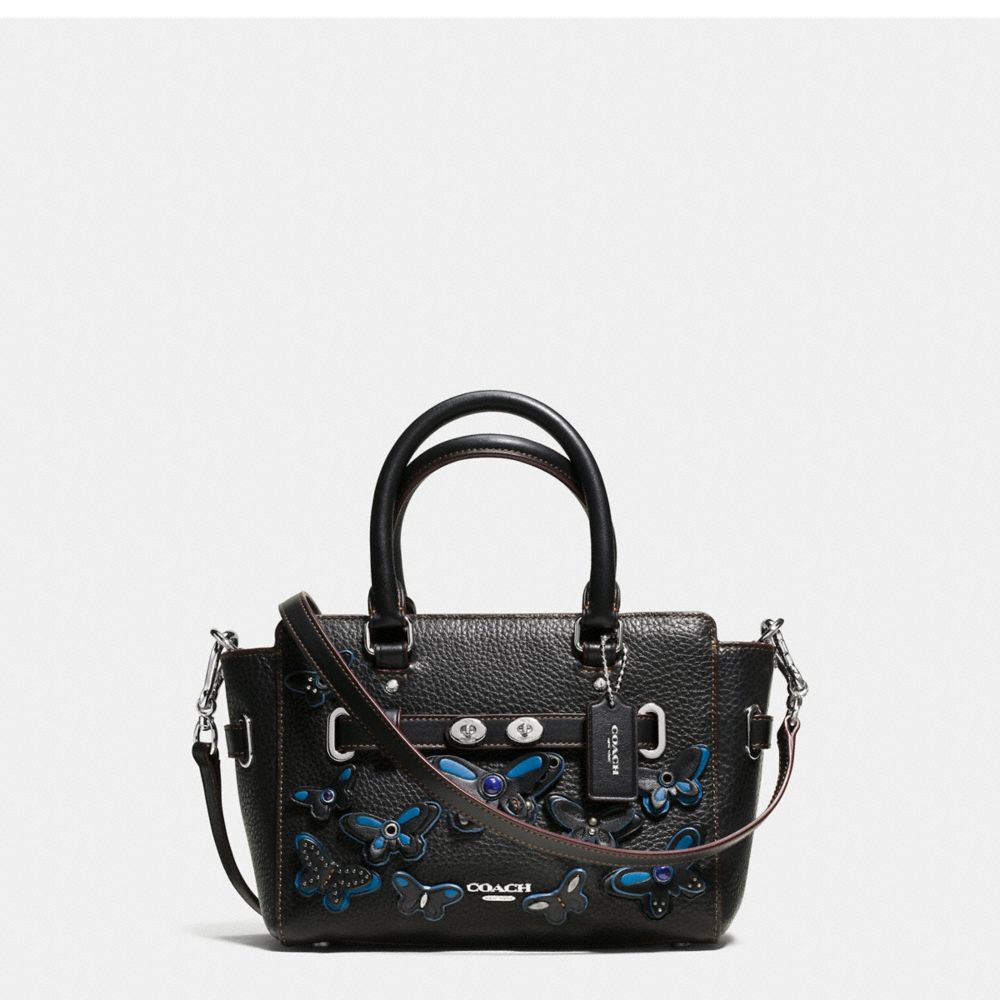 1. COACH f59810 - MINI BLAKE CARRYALL IN PEBBLE LEATHER WITH ALL OVER BUTTERFLY APPLIQUE - SILVER/BLACK