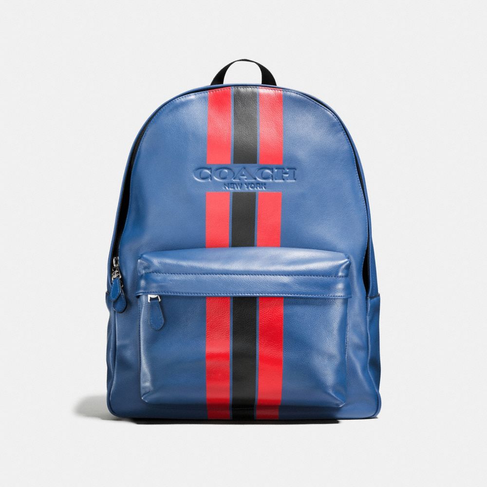 COACH F72237 - CHARLES BACKPACK IN VARSITY LEATHER - INDIGO/BRIGHT-RED - HANDBAGS
