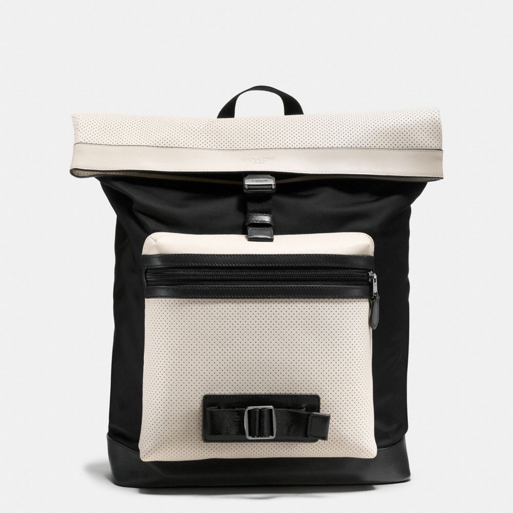 1. COACH f56662 - TERRAIN EXPLORER PACK IN PERFORATED MIXED MATERIALS - CHALK/BLACK