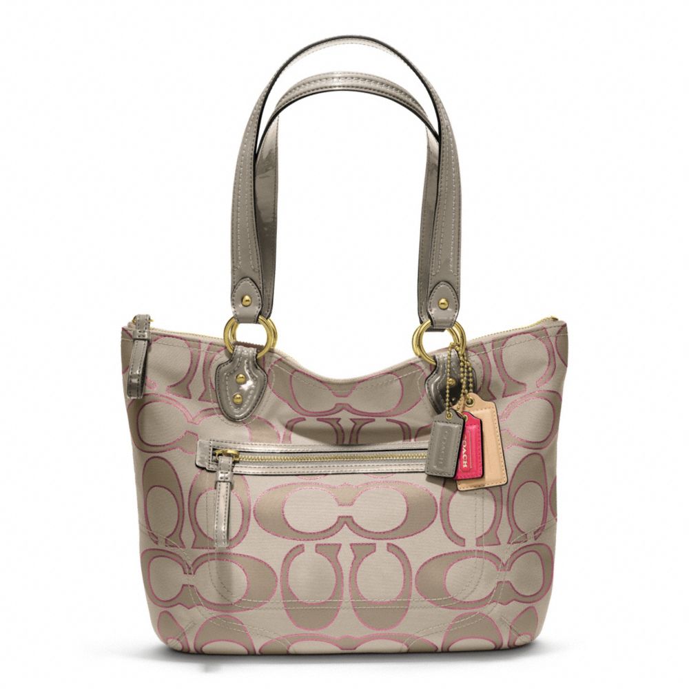 COACH F23473 - POPPY METALLIC SIGNATURE SATEEN SMALL TOTE - BRASS/CREAM Light GoldGHT KHA/ROSE (click the link before for more detail)
