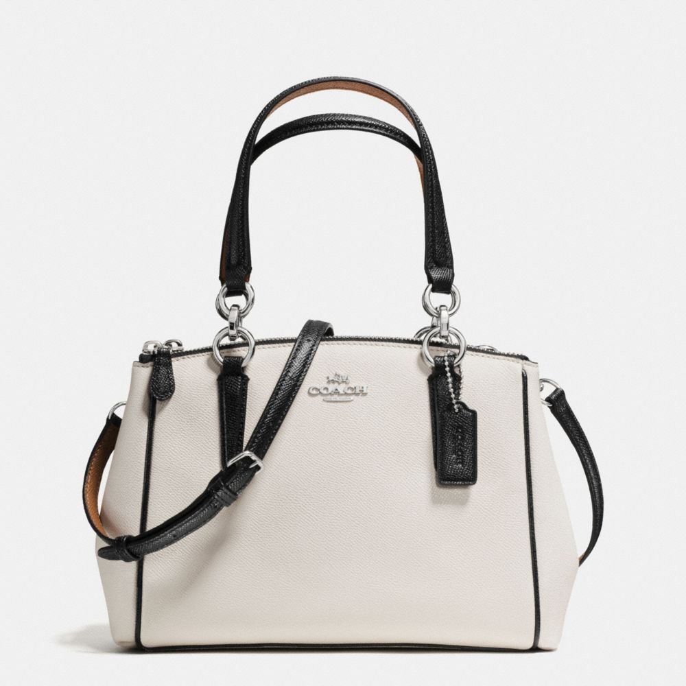 COACH F57487 - MINI CHRISTIE CARRYALL WITH CONTRAST TRIM IN CROSSGRAIN LEATHER - SILVER/CHALK-MULTI - HANDBAGS