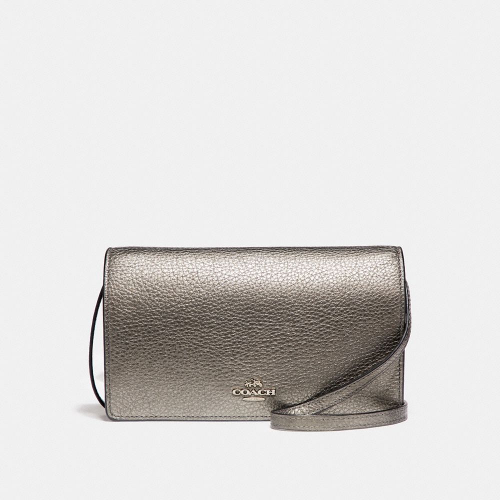 1. COACH f20152 - FOLDOVER CLUTCH CROSSBODY IN METALLIC PEBBLE LEATHER - SILVER/GUNMETAL