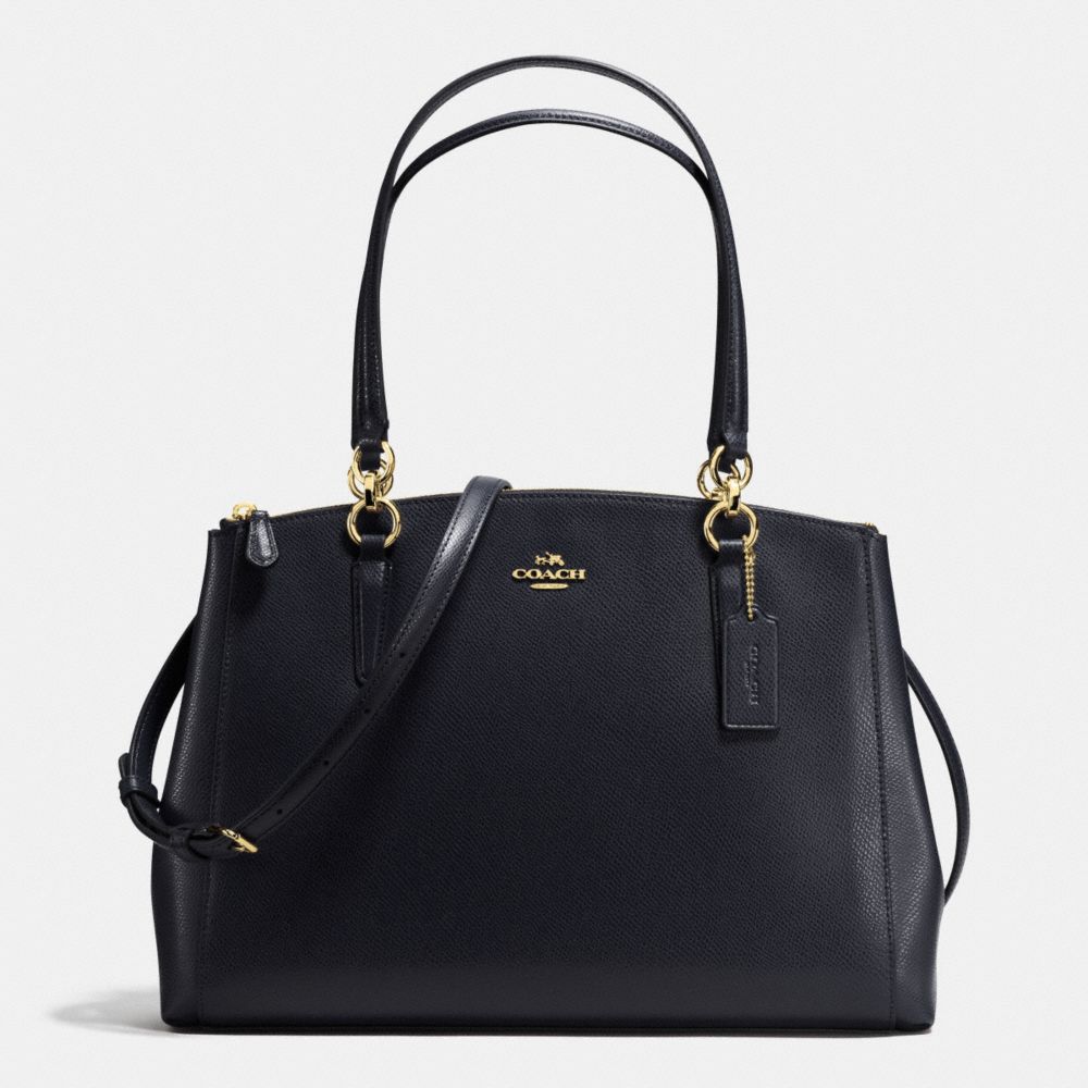 COACH F36606 - CHRISTIE CARRYALL IN CROSSGRAIN LEATHER - IMITATION-GOLD/MIDNIGHT - HANDBAGS