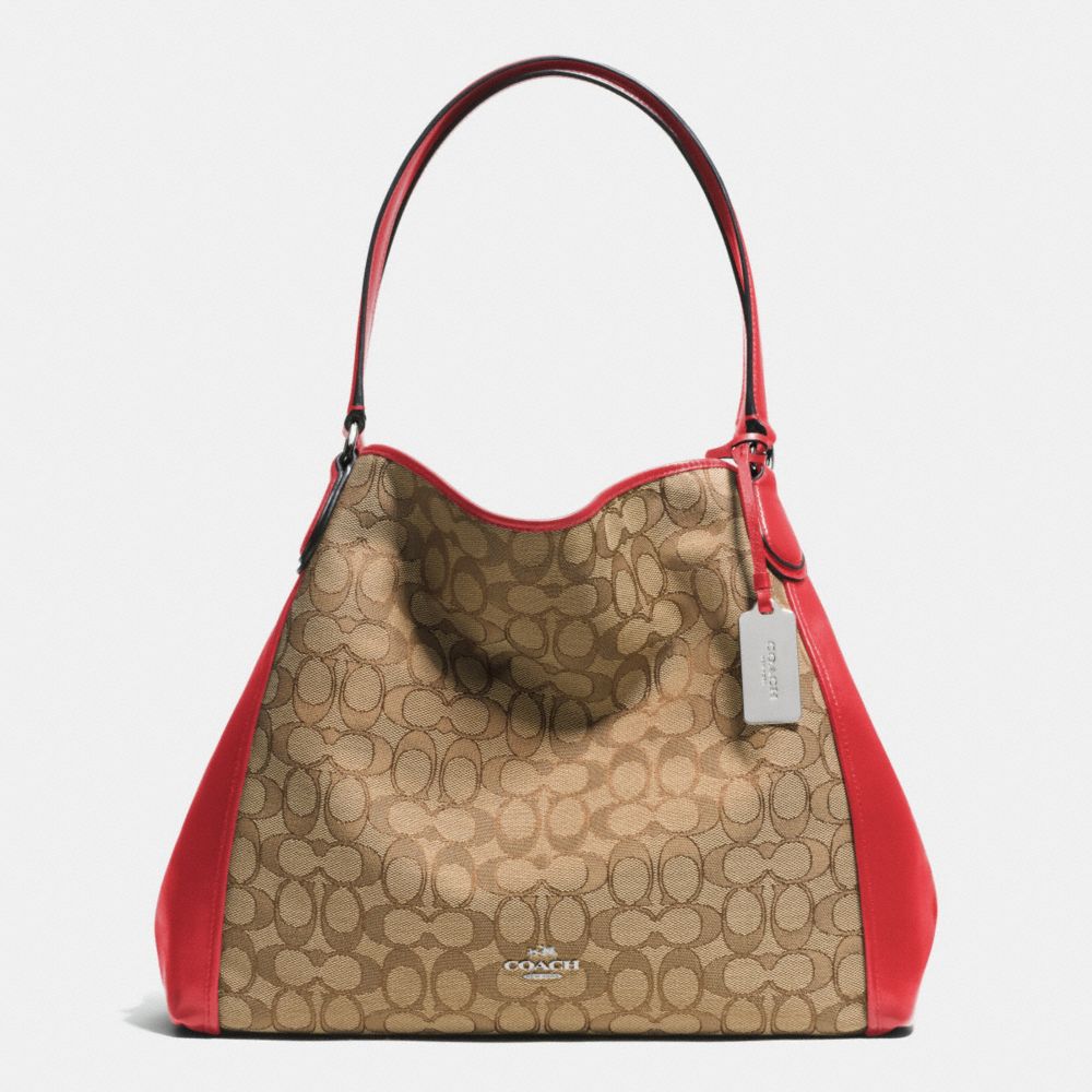 COACH F33523 - EDIE SHOULDER BAG IN SIGNATURE - SILVER/KHAKI/TRUE-RED - HANDBAGS