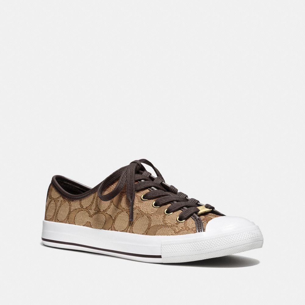 30. COACH f20968 - ACCORDION ZIP WALLET IN SIGNATURE COATED CANVAS WITH VARSITY PATCHES - LIGHT GOLD/LIGHT KHAKI