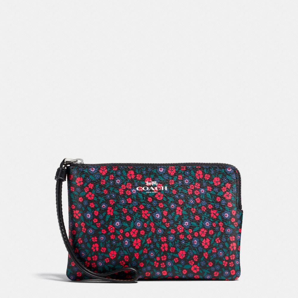 1. COACH f59551 - CORNER ZIP WRISTLET IN RANCH FLORAL PRINT COATED CANVAS - SILVER/BRIGHT RED