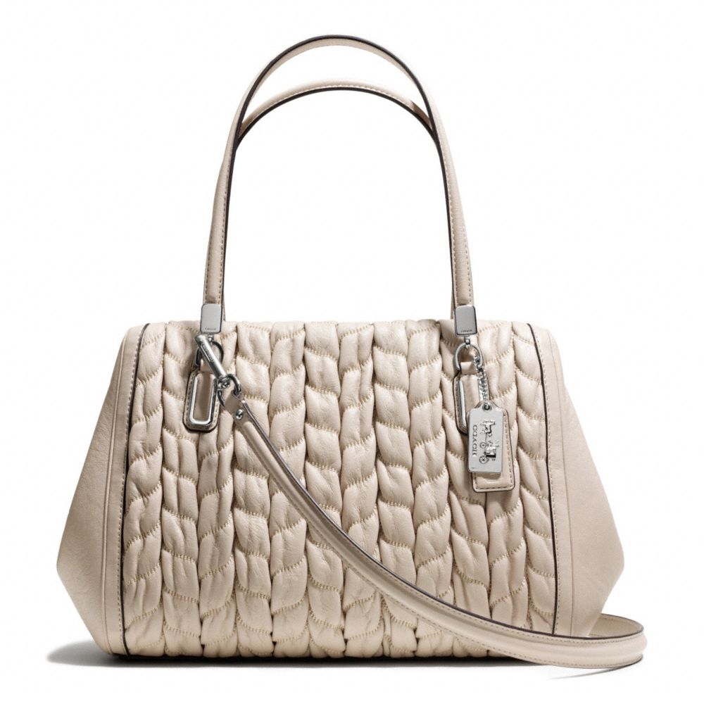 COACH F25985 MADISON GATHERED CHEVRON LEATHER MADELINE EAST/WEST SATCHEL - SILVER/PUTTY(click the link before for more detail)