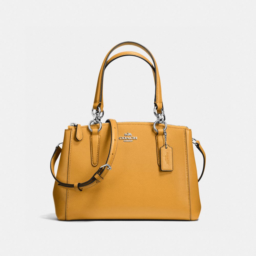 COACH F57523 - MINI CHRISTIE CARRYALL IN CROSSGRAIN LEATHER - SILVER/MUSTARD - HANDBAGS