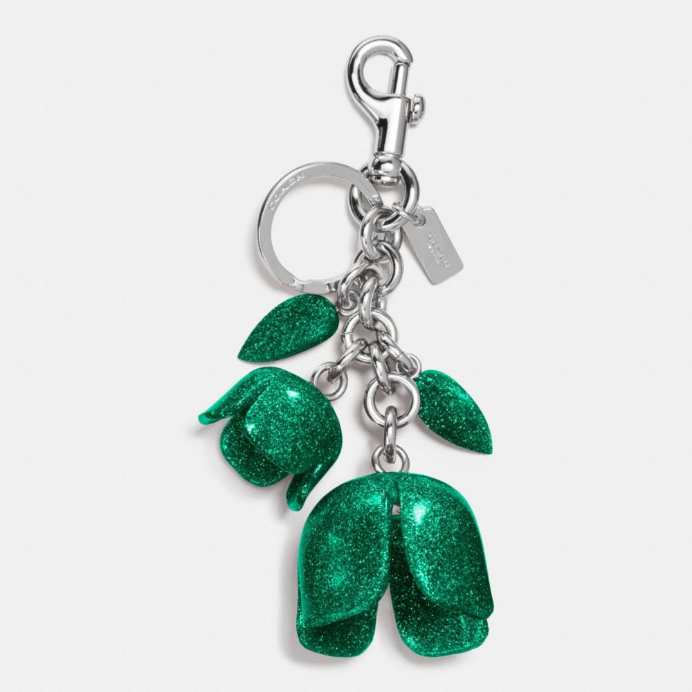 COACH F58514 - GLITTER RESIN TEA ROSE BAG CHARM - SILVER/LEAF (click the link before for more detail)