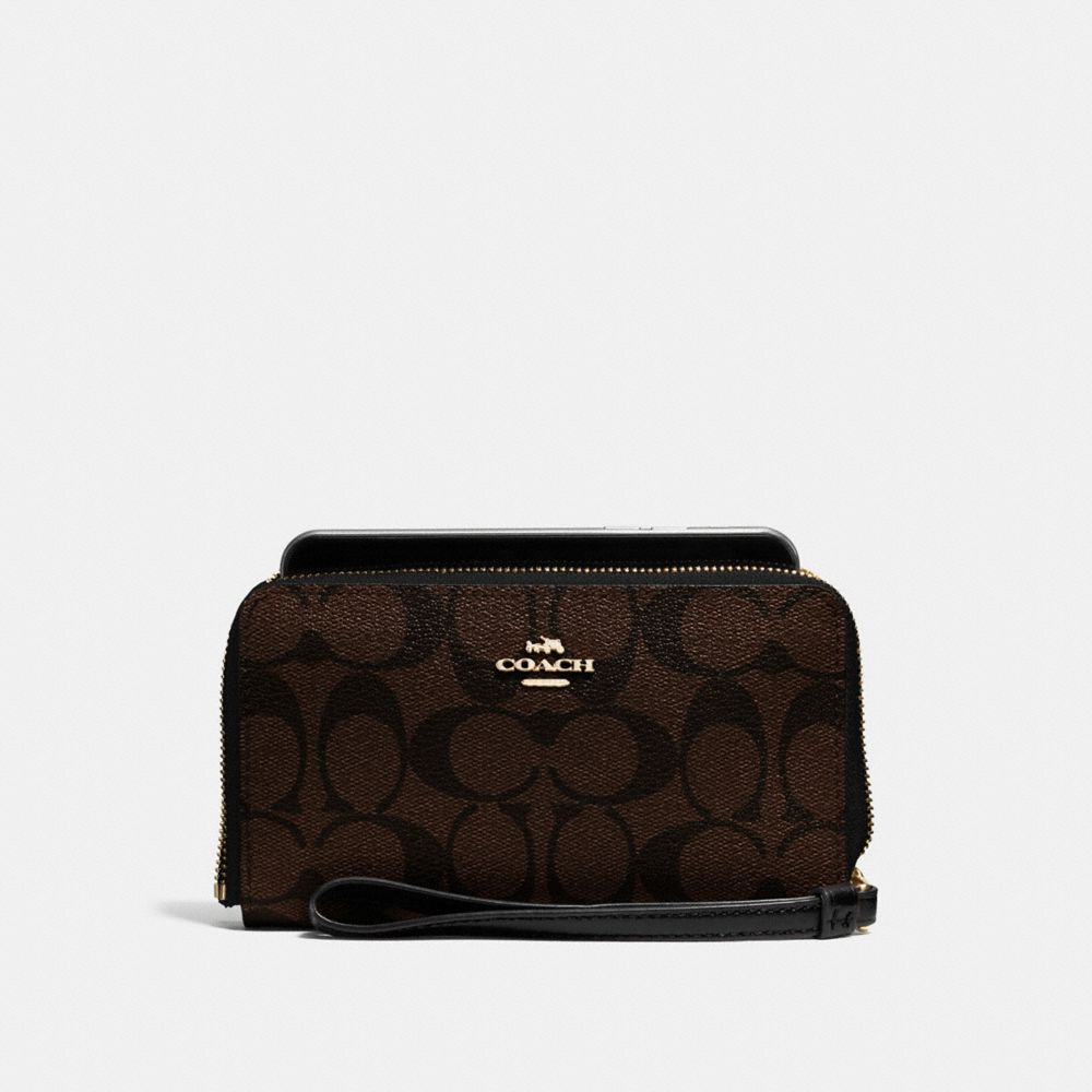 1. COACH f57468 - PHONE WALLET IN SIGNATURE COATED CANVAS - IMITATION GOLD/BROWN/BLACK