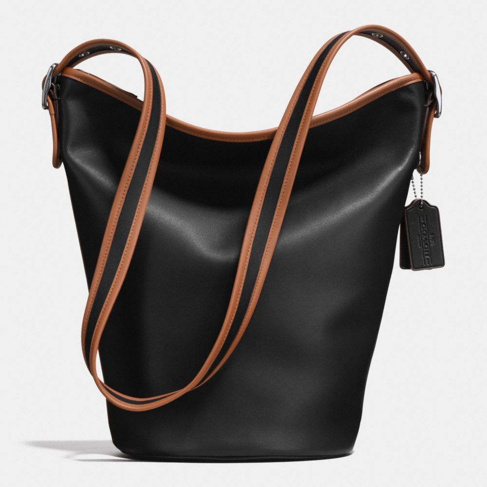 COACH F57458 - 75TH ANNIVERSARY DUFFLE SHOULDER BAG IN GLOVETANNED CALF LEATHER - BLACK-ANTIQUE-NICKEL/BLACK/SADDLE - HANDBAGS