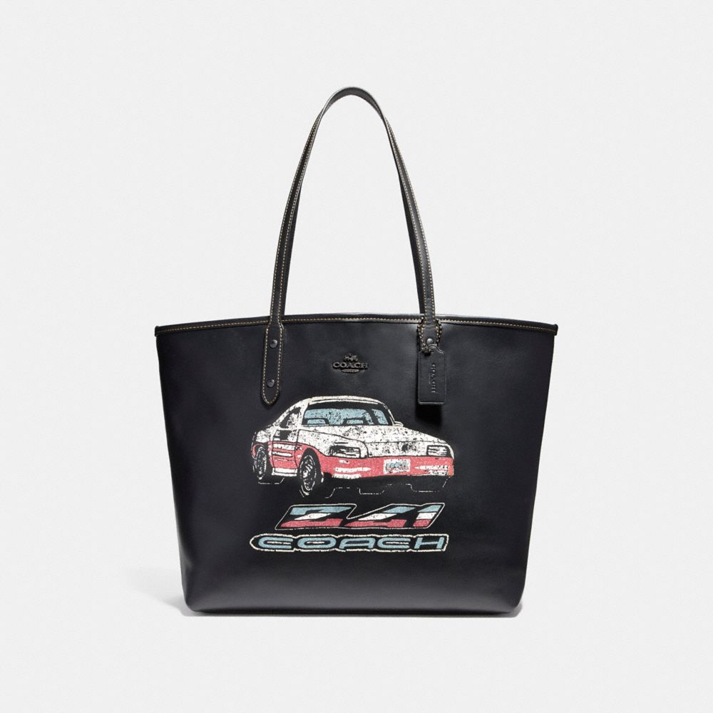 COACH F22692 - OPEN CITY TOTE WITH CAR MOTIF - ANTIQUE-NICKEL/BLACK - HANDBAGS