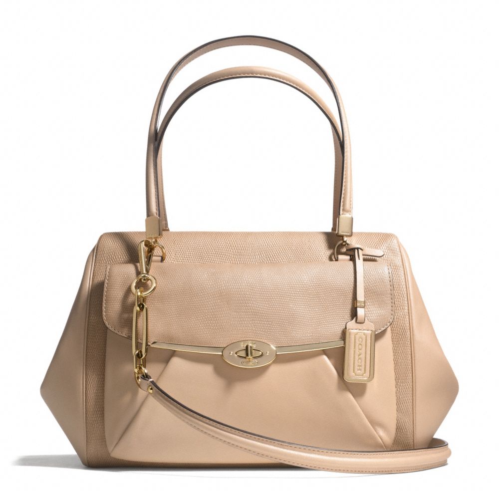 COACH F26325 - MADISON GLITTER LIZARD MADELINE EAST/WEST SATCHEL - LIGHT GOLD/BUFF (click the link before for more detail)