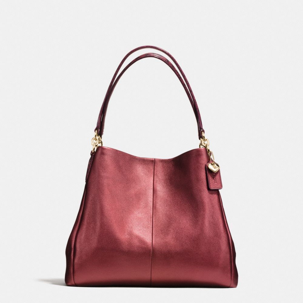 COACH F55516 - PHOEBE SHOULDER BAG IN METALLIC LEATHER WITH EXOTIC TRIM - IMITATION-GOLD/METALLIC-CHERRY - HANDBAGS