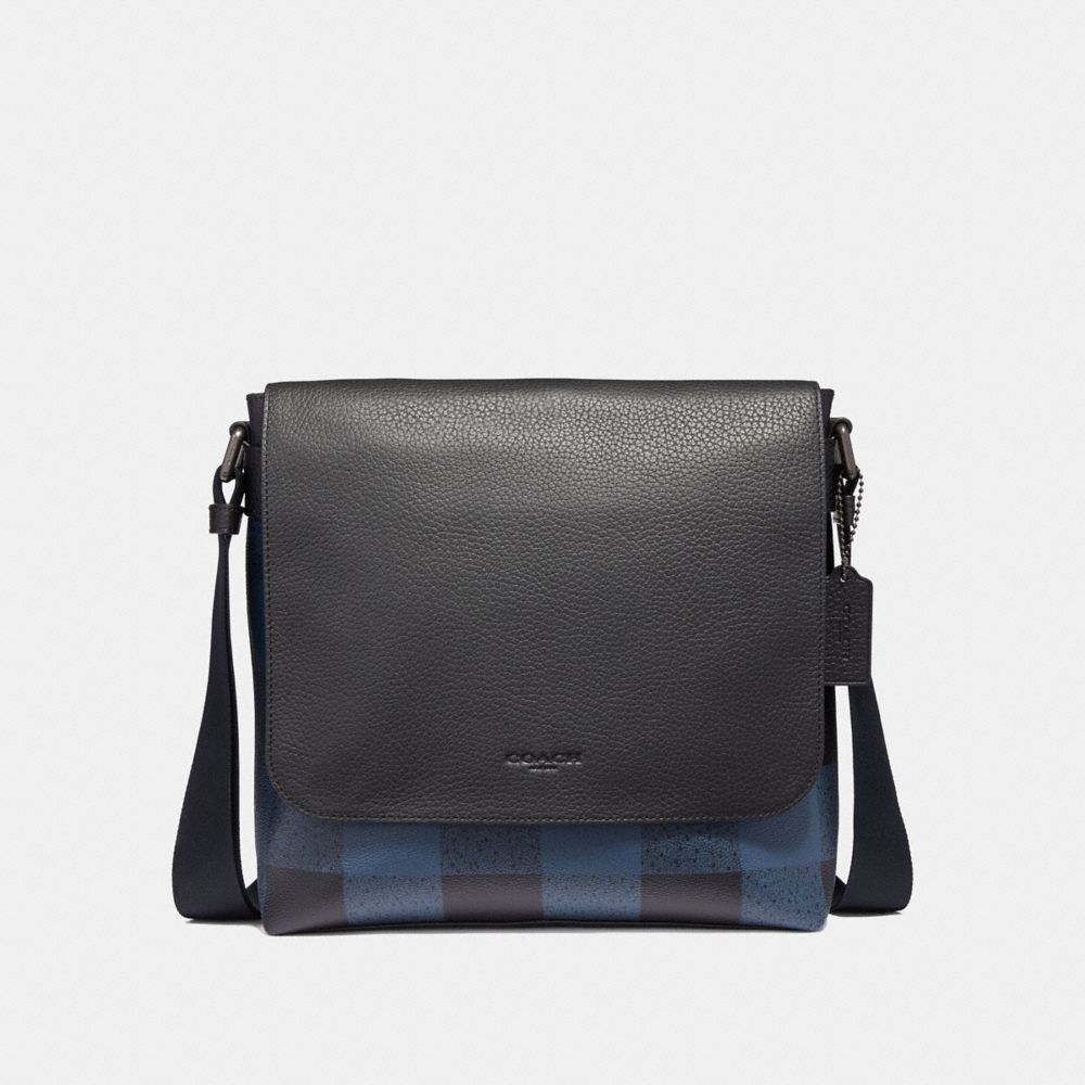 1. COACH f31558 - CHARLE SMALL MESSENGER WITH BUFFALO CHECK PRINT - BLUE MULTI/BLACK ANTIQUE NICKEL