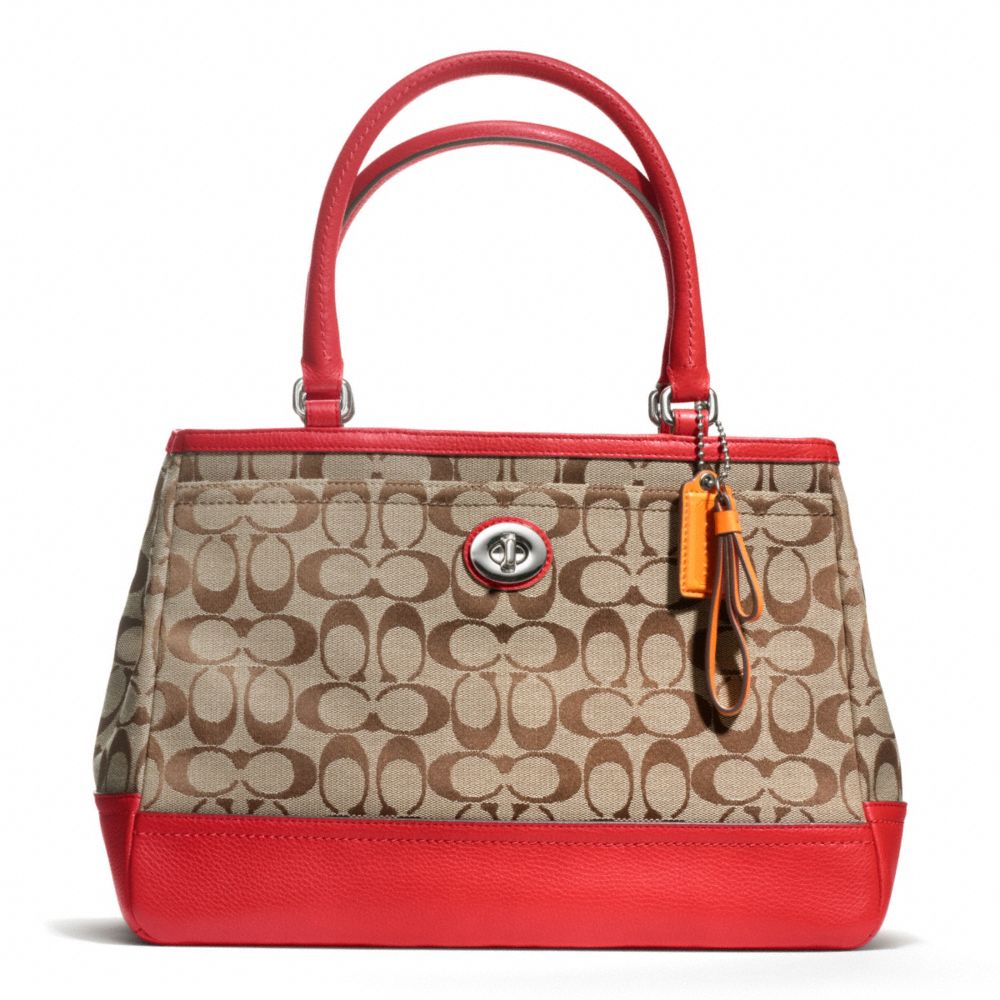 COACH F23294 - PARK SIGNATURE CARRYALL - SILVER/KHAKI/VERMILLION (click the link before for more detail)