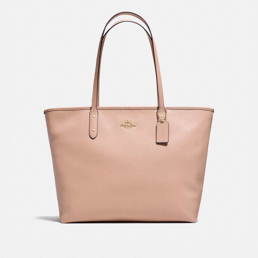 COACH F11926 - LARGE CITY ZIP TOTE IN CROSSGRAIN LEATHER - IMITATION-GOLD/NUDE-PINK - HANDBAGS