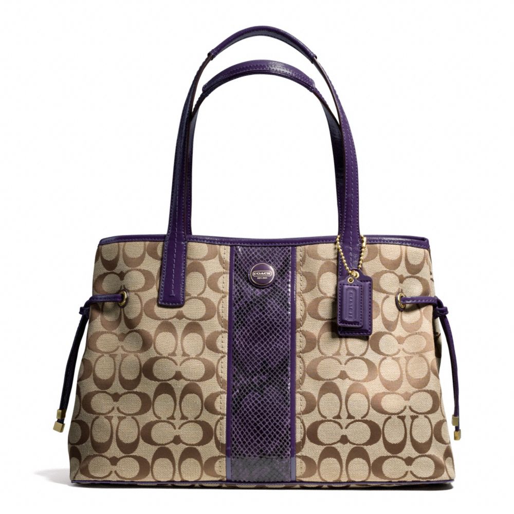 COACH F24882 SIGNATURE STRIPE PYTHON STRIPE CARRYALL - BRASS/KHAKI/PURPLE(click the link before for more detail)