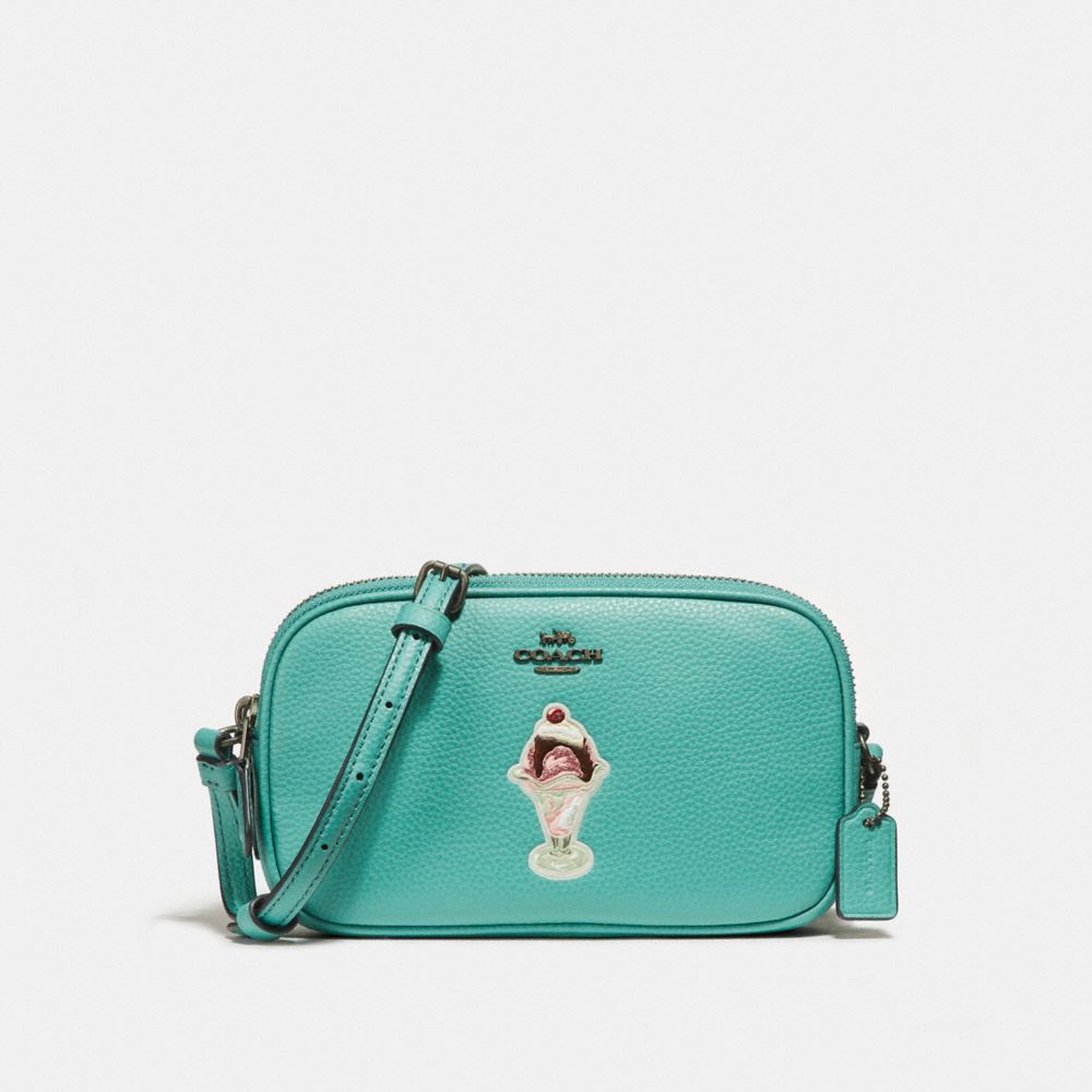 COACH F25845 CROSSBODY POUCH WITH ICE CREAM SUNDAE MOTIF - BLUE GREEN/BLACK ANTIQUE NICKEL(click the link before for more detail)