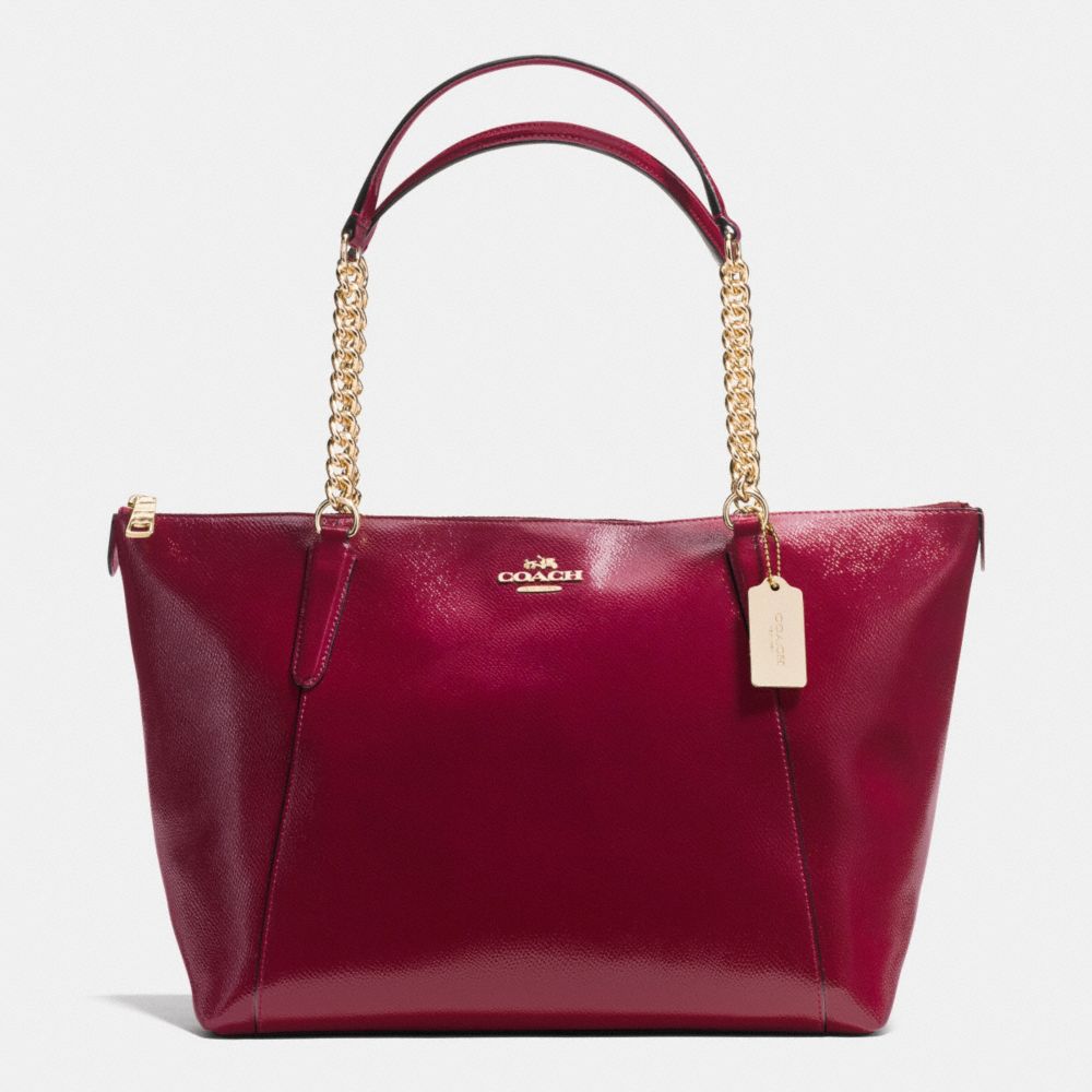 COACH F37078 - AVA CHAIN TOTE IN PATENT CROSSGRAIN LEATHER - IMITATION-GOLD/SHERRY - HANDBAGS