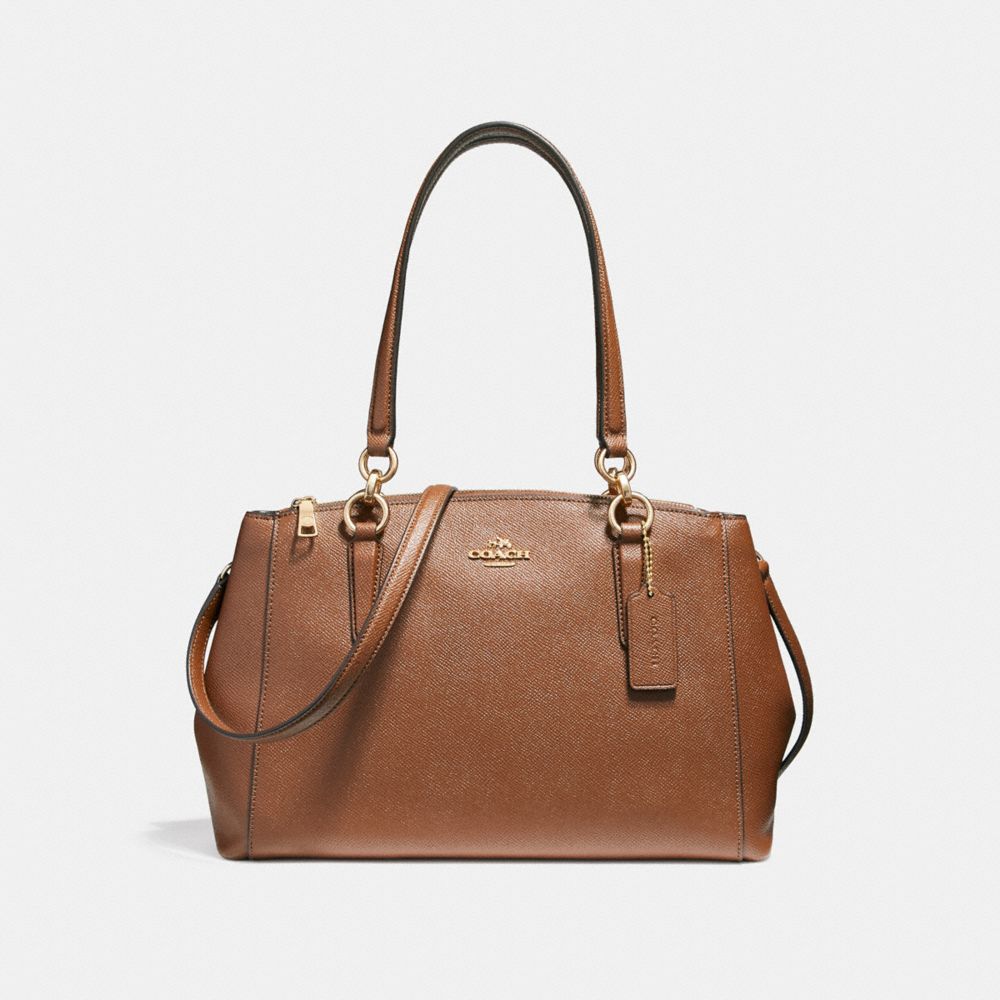 COACH F57520 - SMALL CHRISTIE CARRYALL IN CROSSGRAIN LEATHER - LIGHT-GOLD/SADDLE-2 - HANDBAGS