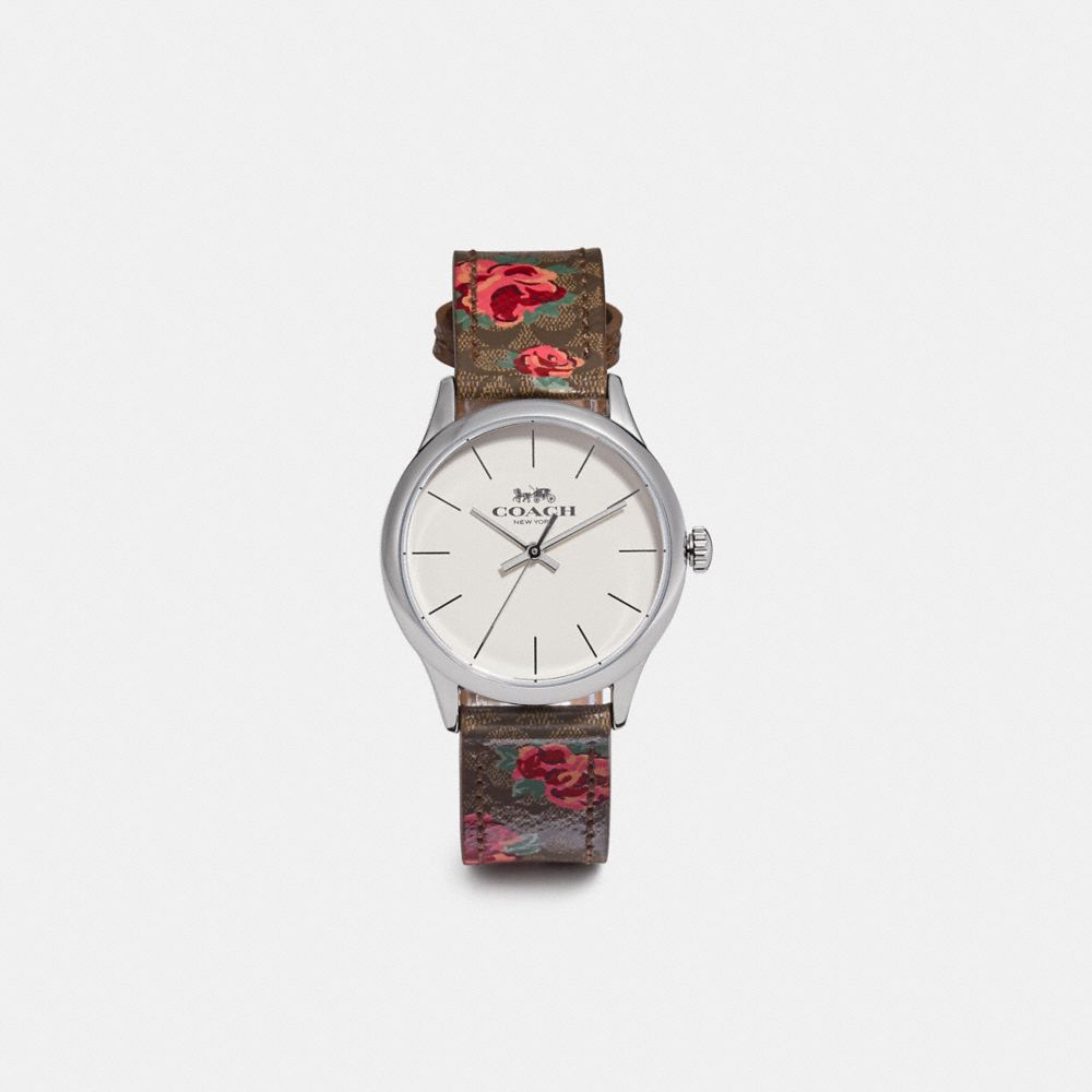 5. COACH F39162 - LARGE WRISTLET WITH FLORAL BUNDLE PRINT - PLATINUM MULTI/SILVER