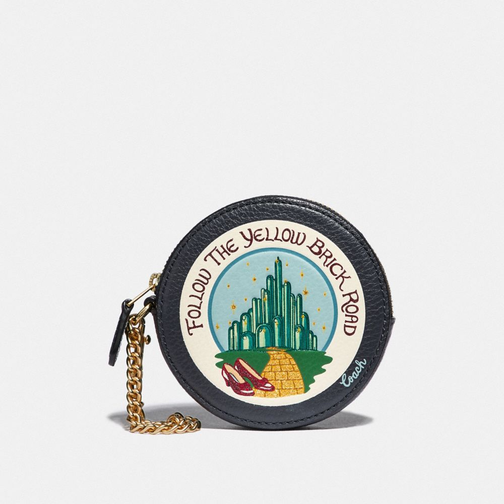 1. COACH F39270 - ROUND COIN CASE WITH EMERALD CITY - MIDNIGHT NAVY/LIGHT GOLD