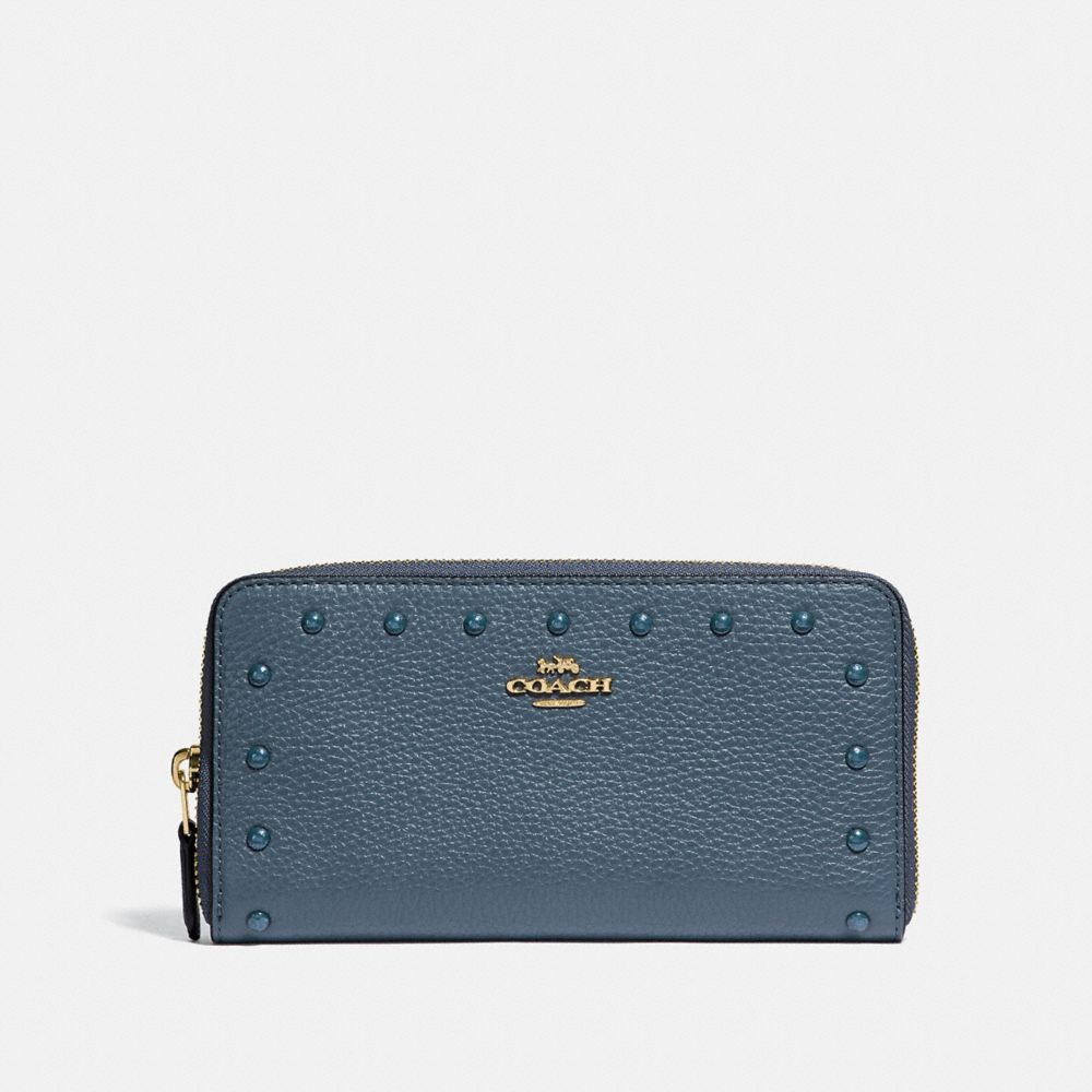 1. COACH F39179 - ACCORDION ZIP WALLET WITH LACQUER RIVETS - DENIM/LIGHT GOLD